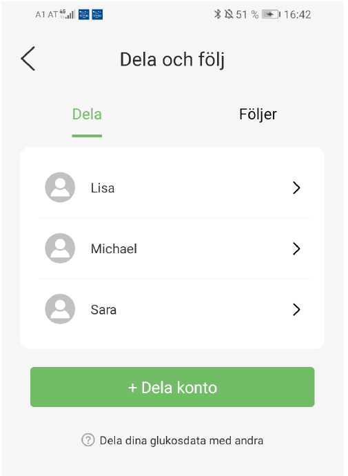 Dela dina värder med personer du har valt ut (t.ex. inom familjen) så att de kan reagera vid behov. De inställda larmen delas också.